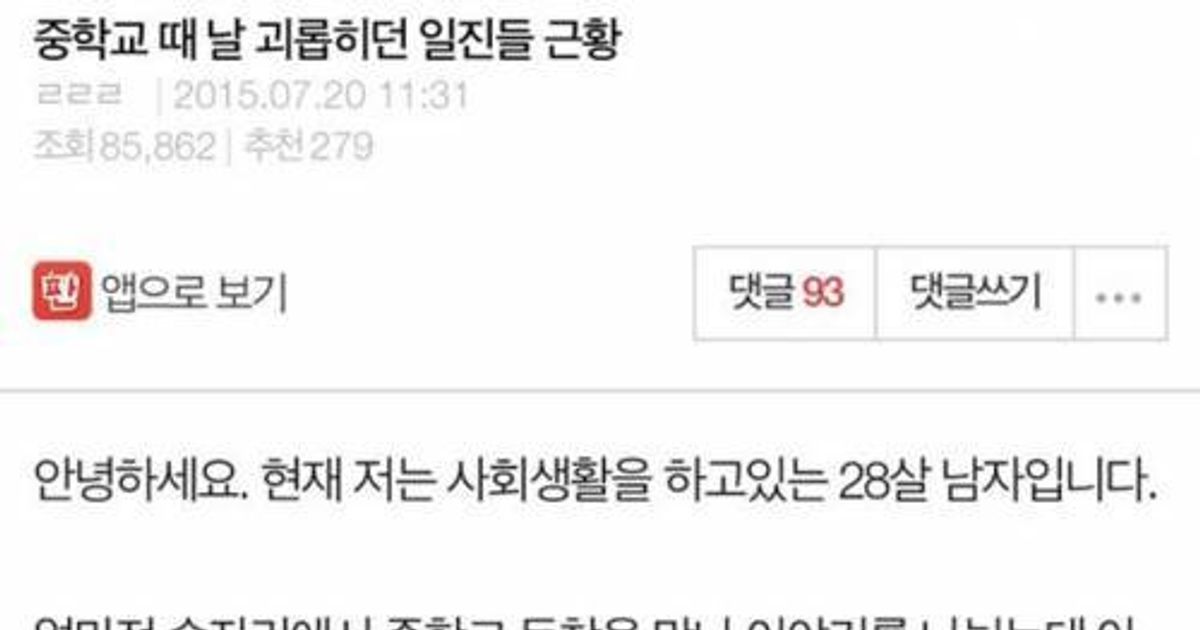 [글스압]중학교 때 날 괴롭히던 일진들 근황,,