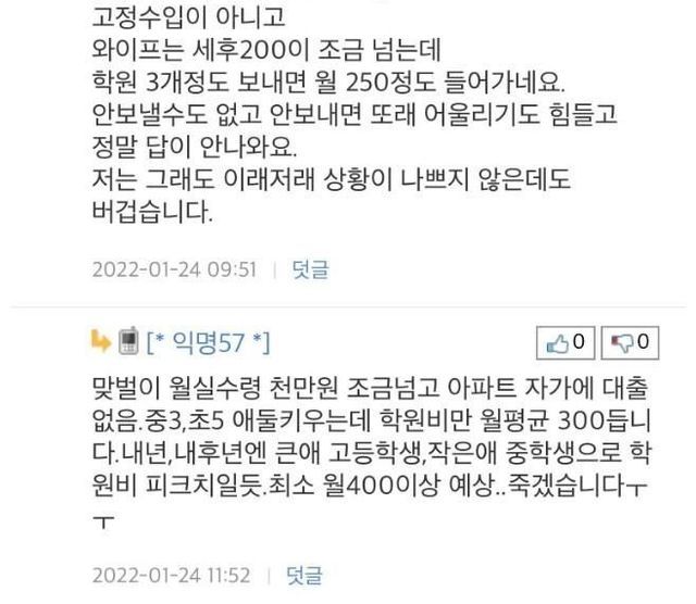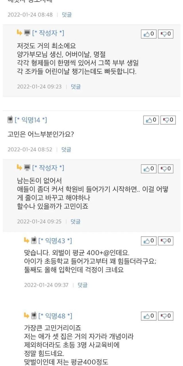 실수령 460만원 외벌이 4인 가족 한 달 지출