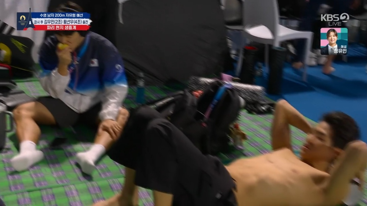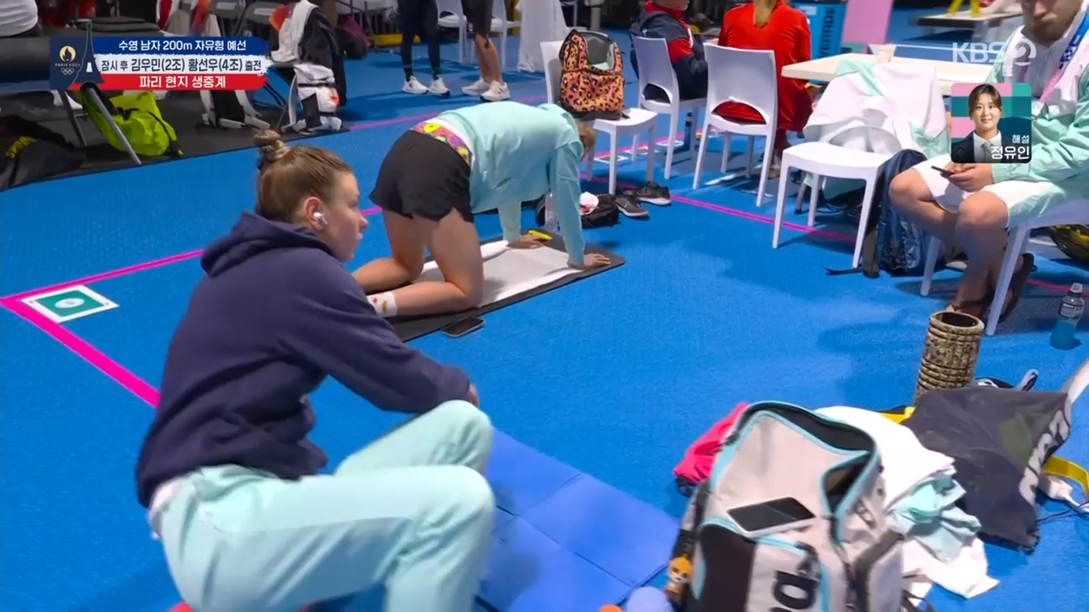 개인 매트에서 경기 전 준비운동하는 외국선수들..그리고 한국선수들은...?