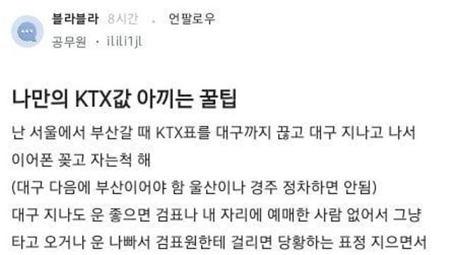 블라인드에 올라온 나만의 KTX값 아끼는 꿀팁