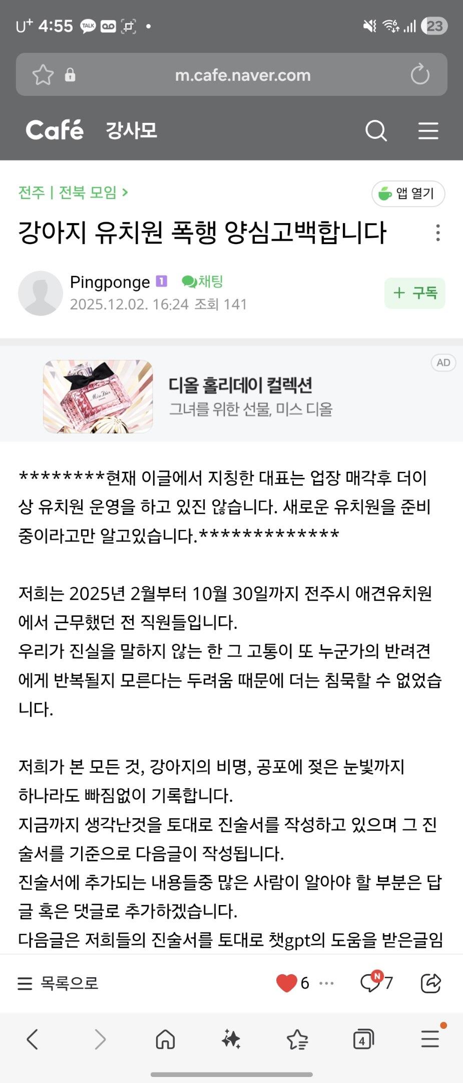 전주 애견유치원 전직원 양심고백..